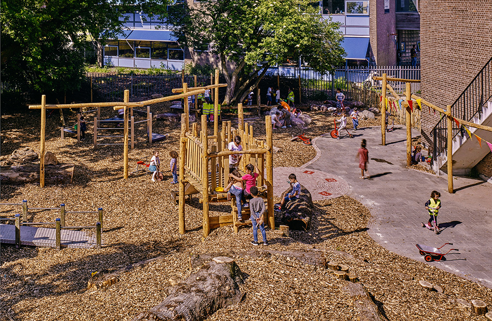 Geen saaie stoeptegels en veel beton, maar een gezonde, duurzame en avontuurlijke buitenruimte. Een eetbaar groen schoolplein waar leerlingen met veel plezier buitenspelen, dat wil toch ieder kind!